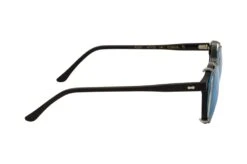 „Les lunettes de soleil Pleat clip-on sont un accessoire incontournable pour les amateurs de vintage, combinant l’élégance d’une monture optique ronde noire avec des verres bleus classiques.“